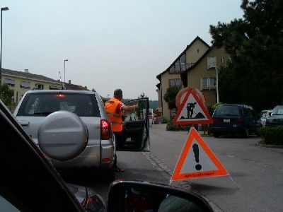 Weggi erkennt am Strassenrand Kollegen, denen er dabei helfen will, den Verkehr zu regeln.