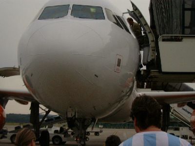Auf uns wartet eine Maschine von Easy Jet. Fragt man sich nur, was die Leute so denken, wenn man mit einem Argentinien-Shirt nach Nizza fliegt...