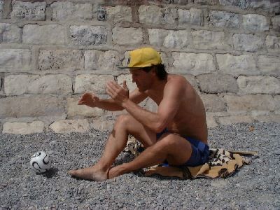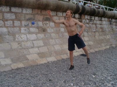 Das Pétanqe- Turnier wurde - trotz Eleganz von Schorschi (sieht zwar eher aus wie ein Kranich) - nicht von diesem gewonnen.