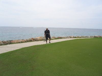 Wir lagen nicht nur faul im Liegestuhl, sondern haben uns auch aktiv betätigt. Dies ist ein sensationelles Green auf dem Hyatt-Golfcourse.
