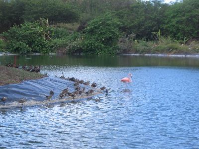 Nebst den vielen Enten hat es auch Flamingos auf der Insel; und hier sogar auf dem Golfcourse!