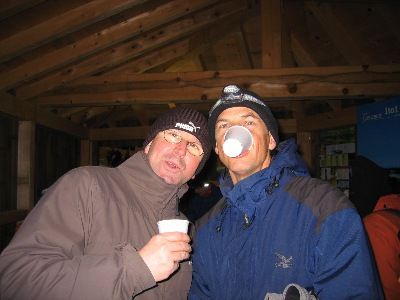 Mit Glühwein und Kecksen wärmen sich die eisigen Schneeschuh-